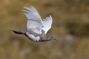 Doch das Knarren eines Schneehahns hat die Stille plötzlich unterbrochen! Und schon sah ich ihn wie an der Schnur gezogen auf mich zufliegen. Für frontale Bilder war ich zu spät