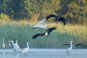 der Schwarzstörche. Unten ist noch der Nebel zu sehen.