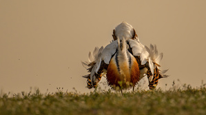 Der Grosstrappenhahn gibt im aller letzten Licht an dem Hang noch einmal alles.
