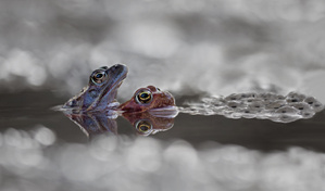 Frösche suchen immer die gleichen Stellen auf, um ihr Gelege im flachen, sonnenbeschienen Uferabschnitten ihren Laich in der Ufervegetation abzuleg