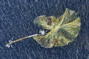 Dieses Seerosenblatt ist in 8cm dickem Eis eingefroren. Im Sommer hatte ich die Seerosen dort fotografiert.