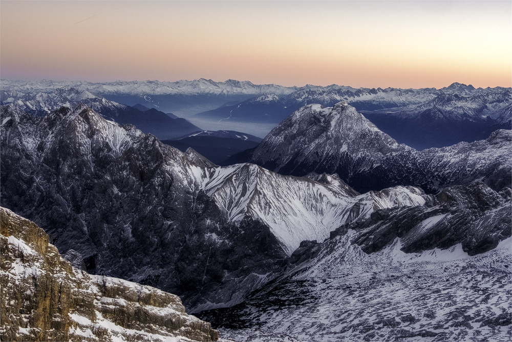 Wir sind gestern mit der letzten Bahn um 19.00 vom Gipfel abgefahren. Ursprünglich sollte die Letzte um 16.30 abfahren, wegen der grossen Menschenmassen mussten "Überstunden" gemacht werden. Dies hat mir zu dieser Aufnahme kurz vor der blauen Stunde verholfen.