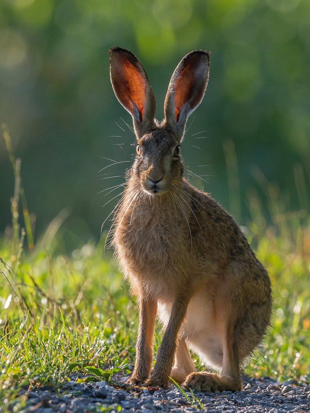 Nochmal ein Bild aus warmen Tagen letzten Sommer. Nicht nur die Löffel sind durchleuchtet. Auch die Tasthaare. Aber was ist bloss los mit diesen? Anscheinend sind sie innen dunkel gefärbt und leuchten deshalb nicht im Gegenlicht. Das sah ich erst bei 100% Vergrösserung in LR.
