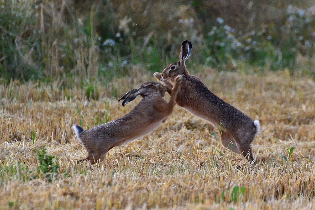 Kurz vor Sonnenuntergang konnte ich den Hasen bei ihrem Treiben zuschauen, leider hat die Verschlusszeit trotz