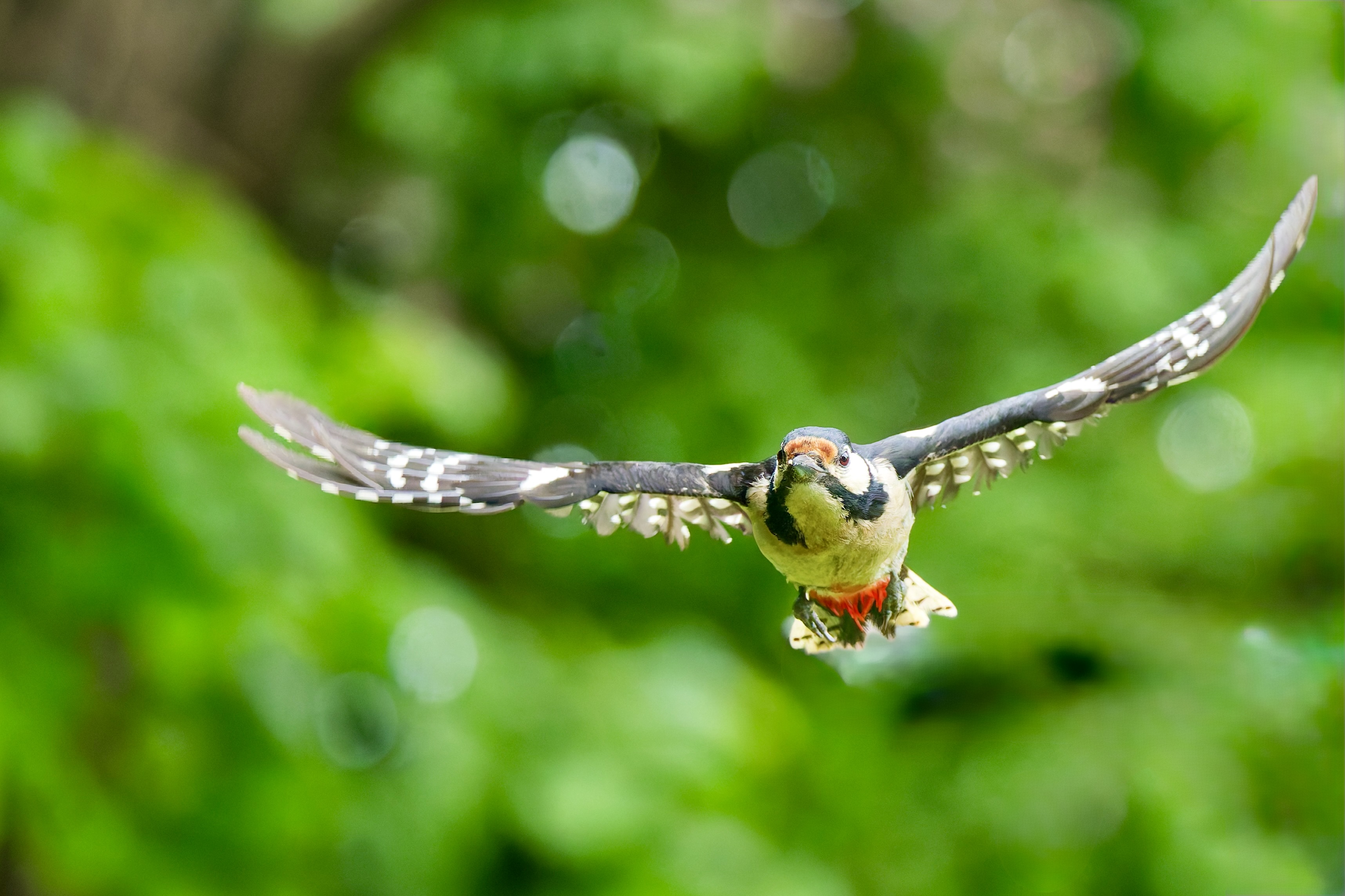 Ich saß in einem Tarnzelt (mein Hund zu meinen Füssen, damit er die Vögel nicht verscheucht) und dieser Buntspecht kam direkt auf mich zugeflogen.