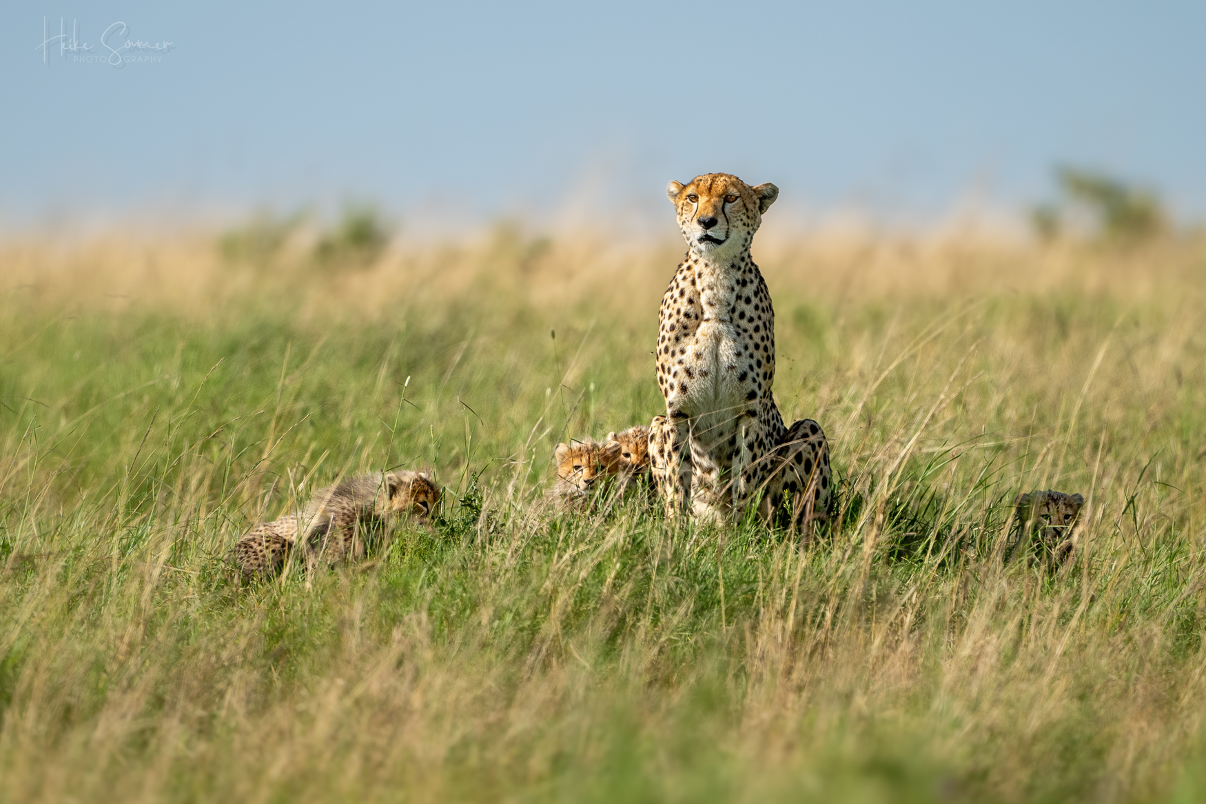 Ich weiß nicht, ob dieser junge Gepard hier ein Weibchen oder ein Männchen ist, aber er hat das Jagen gelernt. Das Bild entstand kurz vor dem endgültigen Kehlbiss an einer Thomsongazelle, die er erjagt hat und die in diesem Moment rechts außerhalb im hohen Gras liegt. Der Gepard schnaufte hier noch einmal kurz durch, die Jagd war anstrengend.