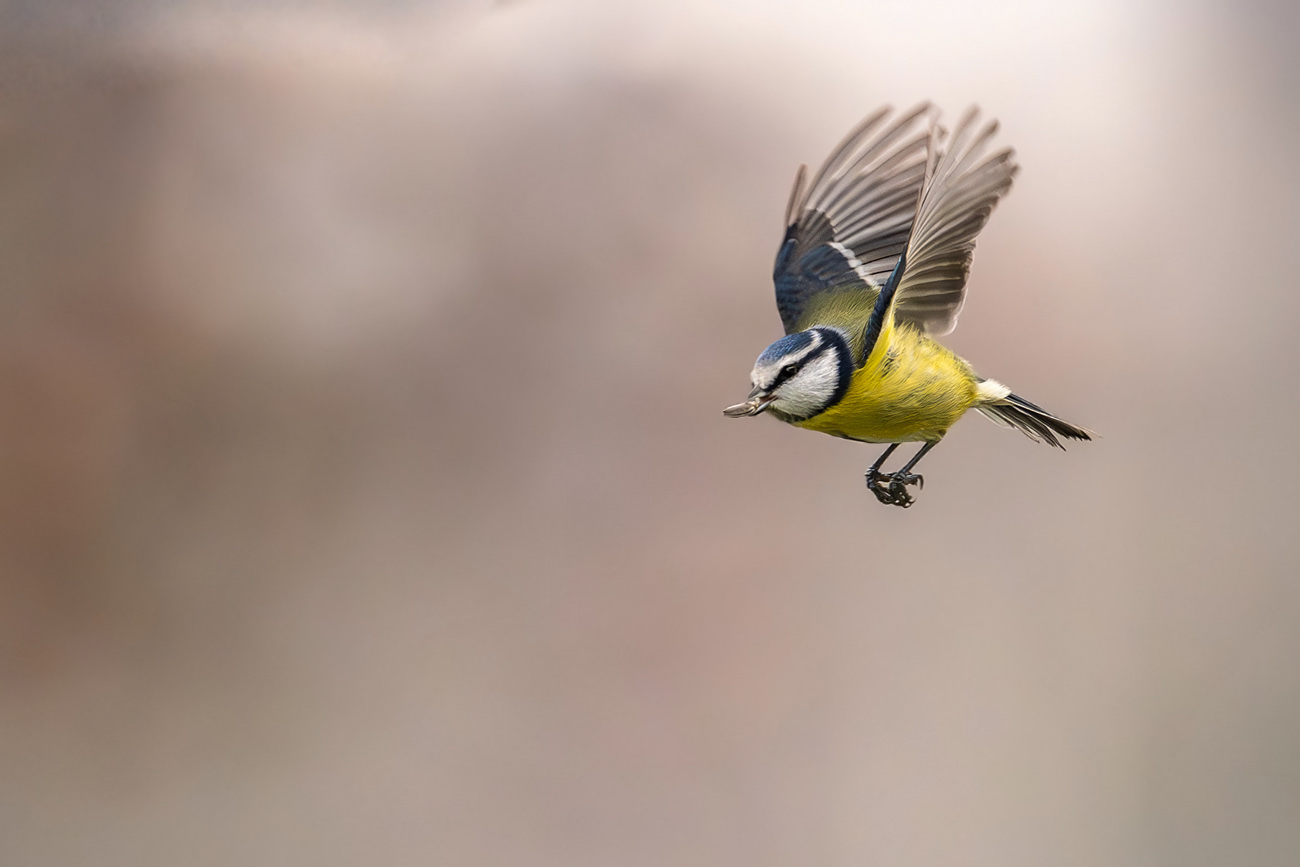 Nach vielen, vielen Versuchen hab ich mal eines meiner täglichen Besucher an der Futterstelle im Garten im Flug erwischt