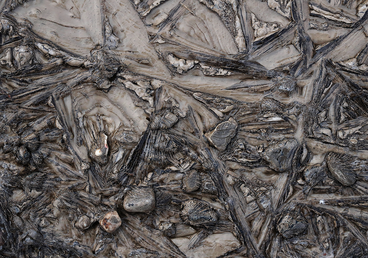 statt Blümchen gibt es heute. Diese Strukturen bildeten sich durch den Frost im Matsch.