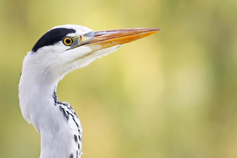 Ein Herbstbild von einem aufmerksamen Reiher.