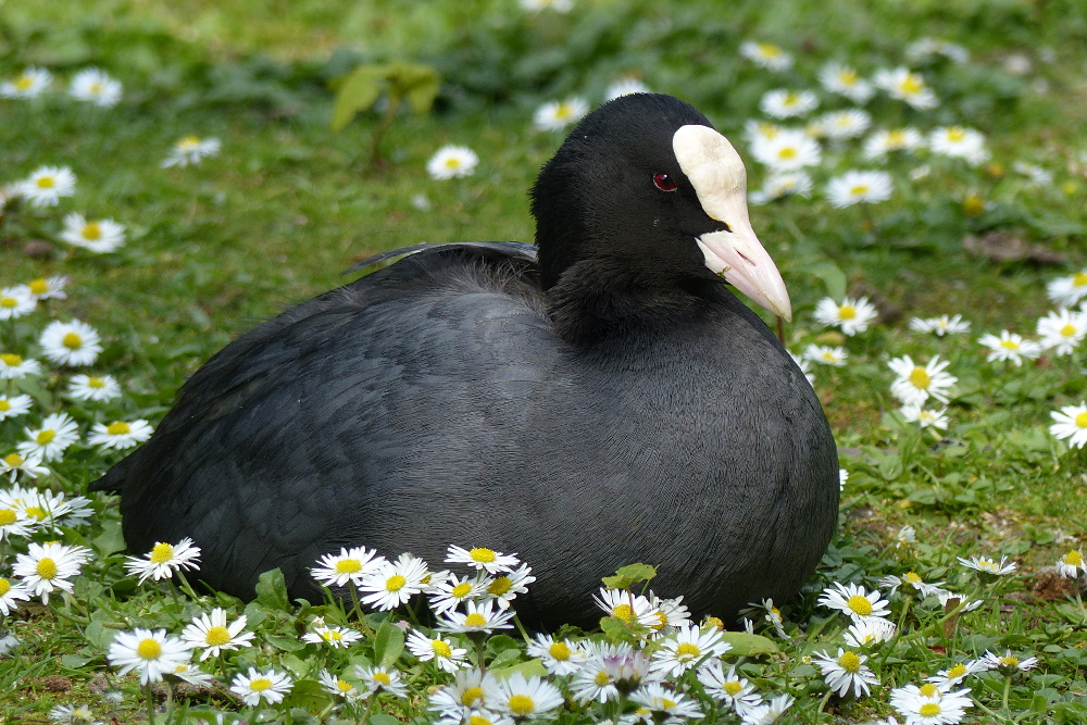Die Rallen im Park sind nicht ansatzweise so schwer von Menschen zu stören wie die Kanadagänse (fressen durchaus schon mal aus der Hand) oder die Stockenten (bleiben auf dem Weg liegen, wenn man keinen Meter entfernt passiert), aber nah' genug kommt man alle Male 'ran.